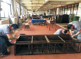 御乾堂紅木在細節上也體現著高水準,僅刮磨這一道工序就有平磨、花磨、拋光等八道工序和十五個作業標準,種種體現出生產管理規范化。